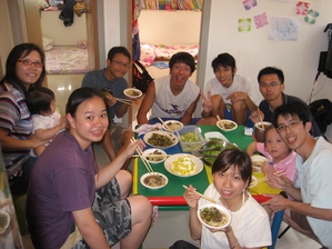 有一天,因為要跟兩個同學仔一起研經,索性叫他們下課後來吃麵,但Cherry幫我大肆宣傳,所以他們新界北幾乎全組的同學都來吃,還好我前一天煮得較多才夠吃(不知道是否是神的感動﹖)!